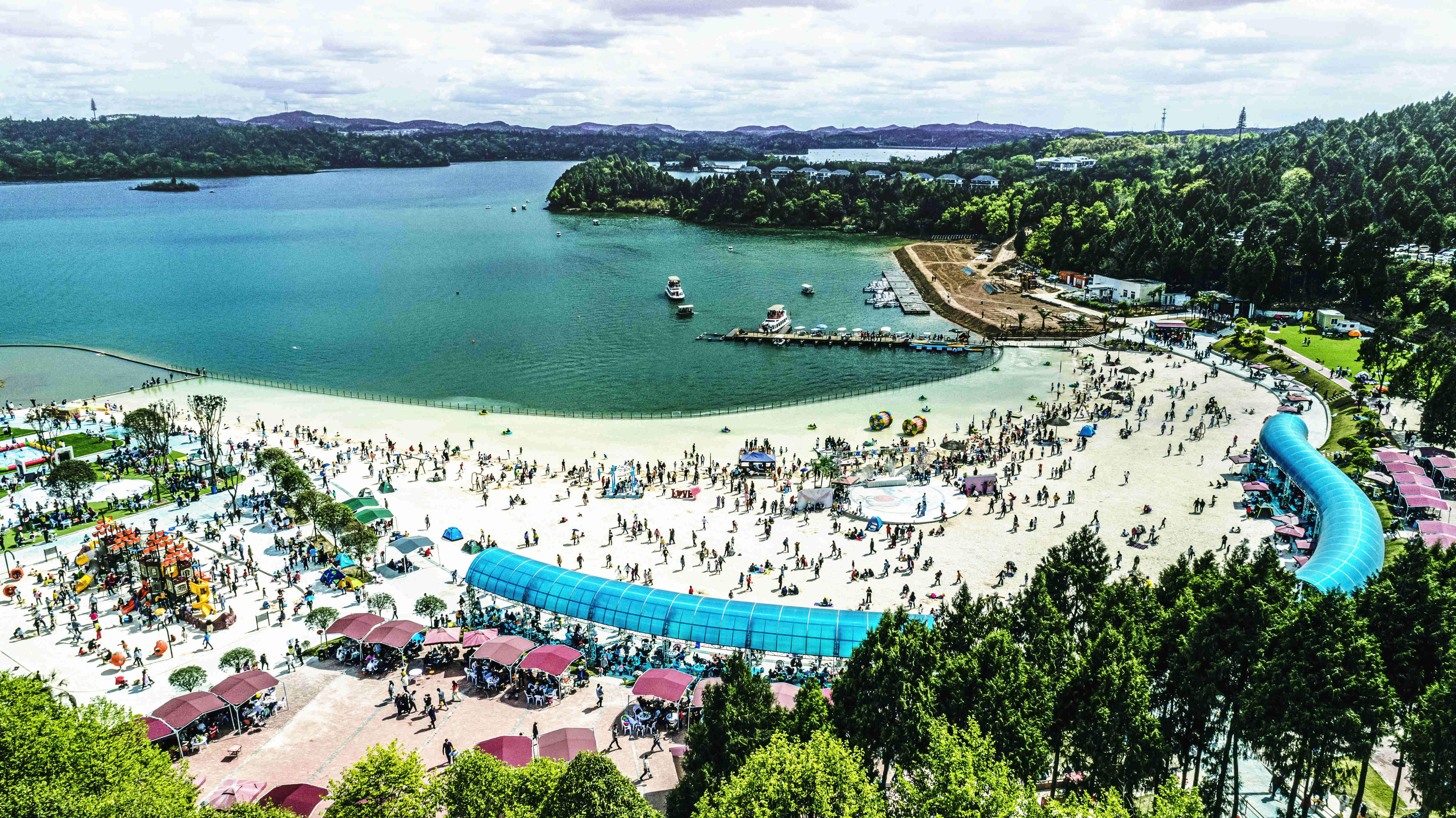 綿陽仙海親水灣沙灘樂園:游客譽(yù)為“綿陽馬爾代夫”