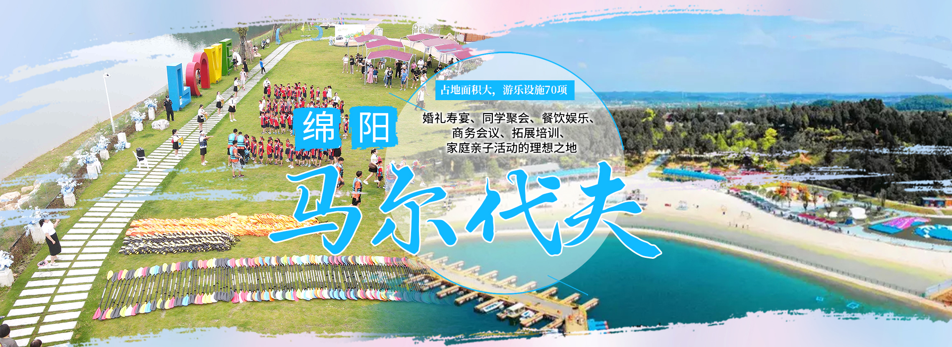 綿陽嘉成文化旅游有限公司是一家旅游開發(fā)公司,成立于2019年。 親水灣沙灘樂園項(xiàng)目由綿陽嘉成文化旅游有限公司開發(fā)運(yùn)營,位于國家級(jí)水利風(fēng)景區(qū)——綿陽市仙海水利風(fēng)景區(qū),距綿陽市區(qū)15公里,車程約半個(gè)小時(shí),是依托沉抗水庫建設(shè)的仙海風(fēng)景區(qū)重點(diǎn)旅游項(xiàng)目。進(jìn)入仙海風(fēng)景區(qū)上坡向左進(jìn)入環(huán)湖路前行1000米。項(xiàng)目總占地220畝,其中核心沙灘樂園占地100畝,現(xiàn)建成沙灘休閑、淺灘嬉水、水上運(yùn)動(dòng),親子蹦蹦云、網(wǎng)紅多人秋千、人力過山車、水幕秋千、團(tuán)隊(duì)拓展等項(xiàng)目十余個(gè),還開設(shè)有特色中餐、仙海火鍋魚,自助燒烤等飲食項(xiàng)目。 近觀青山綠水,遠(yuǎn)眺碧波蕩漾,清晨朝霞映翠、傍晚水天一色。親水灣沙灘主題樂園有可容納200人的沙灘會(huì)議室和30人的小型會(huì)議室;棋牌室16間; 商務(wù)KTV;餐飲中心可同時(shí)容納300人用餐;篝火晚會(huì)場(chǎng)地等,是婚禮壽宴、同學(xué)聚會(huì)、餐飲娛樂、商務(wù)會(huì)議、拓展培訓(xùn)、家庭親子活動(dòng)的首選之地。